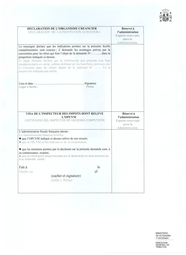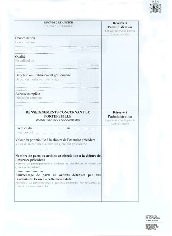 En conséquence, je vous propose d’adopter la procédure suivante, afin de rendre cette clause opérationnelle pour les OPCVM français (les « Instituciones de inversión colectiva » espagnoles étant assujetties à l’ « impuesto sobre Sociedades », la procédure n’est pas nécessaire pour elles).